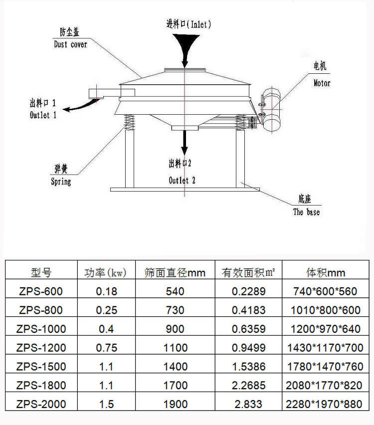 多用于面粉、淀粉、洗衣粉、金屬粉、添加劑、化工、非礦等行業的顆粒粉末的粗略篩分、精密篩分,處理量大、易與生產線結合??稍?00MM至1800MM之間選擇。